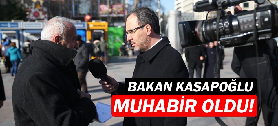 Bakan Kasapoğlu, Çalışan Gazeteciler Günü’nde eline mikrofonu alarak Ankara’nın en işlek meydanlarından Kızılay’da muhabirlik yaptı. Bakan Kasapoğlu’nu elinde mikrofonla gören vatandaşlar şaşkınlıklarını gizleyemedi.