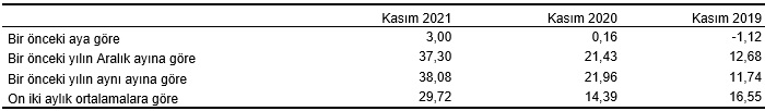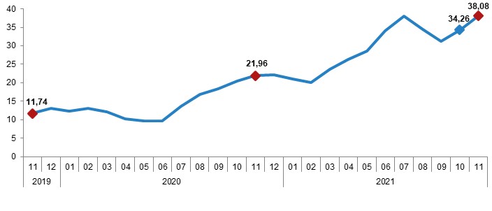 H-ÜFE yıllık değişim oranları (%), Kasım 2021