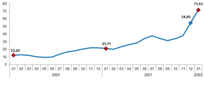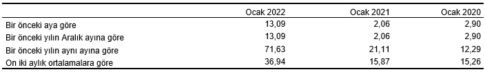H-ÜFE yıllık değişim oranları (%), Ocak 2022