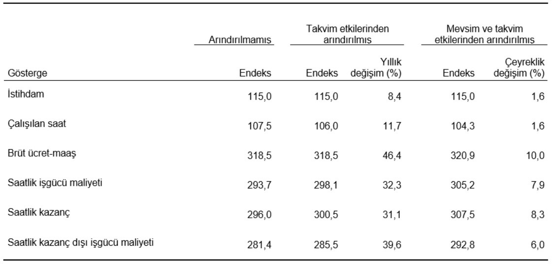 Saatlik kazanç endeksi çeyreklik %8,3 arttı