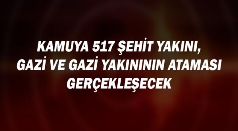 11 Nisan 2023 tarihinde ataması yapılacak 517 kişiyle birlikte bugüne kadar kamuda istihdamı sağlanan şehit yakını, gazi ve gazi yakınlarının toplam sayısı 48 bin 556’ya ulaşacak.