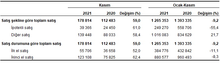 Konut satışı, Kasım 2021