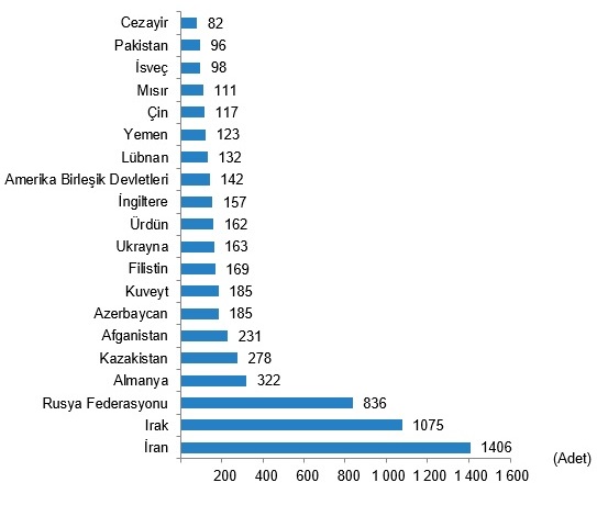 Uyruklara göre en çok konut satışı yapılan 20 ülke, Kasım 2021