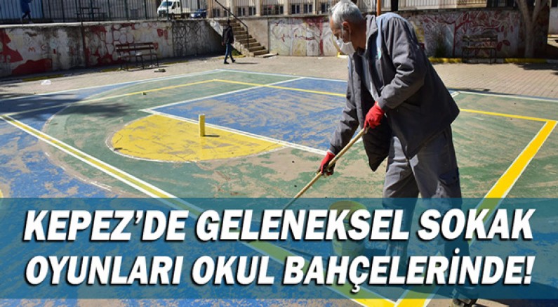 Kepez’in okul bahçelerinde unutulmaya yüz tutmuş sokak oyunları oynanıyor. Kepez Belediyesi, çocukların beden sağlığına katkı veren ve günümüzde unutulmaya yüz tutmuş geleneksel sokak oyunlarını okul bahçelerinde yaşatıyor. Fen İşleri Müdürlüğü Ekiplerince Varsak Şelale İlkokulu’nda gerçekleştirilen oyun çizgi çalışmaları ile okul bahçesi yeni oyun çizimleriyle renklendirildi.