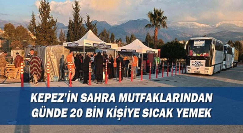 Kepez Belediyesi’nin depremzedeler için 3 Osmaniye, 2 İskenderun, 2 Elbistan ve 1 Antalya’da kurduğu toplam 8 Sahra Mutfağında günlük 20 bin kişiye sıcak yemek imkanı sunuluyor. Kahramanmaraş merkezli 10 ilde meydana gelen felaketin ilk gününde deprem bölgesine koşan Kepez Belediyesi, depremzedeler için Sahra Mutfakları kurdu. AFAD koordinesinde yardım çalışmalarını sürdüren Kepez Belediyesi, 3 Osmaniye, 2 İskenderun, 2 Elbistan ve 1 Antalya olmak üzere 8 sahra mutfağını depremzedelerin hizmetine sundu. Kepez Belediyesi’nin Sahra Mutfaklarında günlük 20 bin kişiye yemek pişiriliyor. Depremzedelere 24 saat boyunca sıcak yemek imkanı sunulan Sahra Mutfaklarında çocuklarda unutulmadı. Kepez Belediyesi, çocuklara sabah ve akşamları sıcak sütten meyve suyuna, bisküviden çikolataya kadar sevdikleri yiyecekleri de ikram ediyor. Deprem bölgesinde 7 Sahra Mutfağı kuran Kepez Belediyesi, Antalya’ya gelen depremzedeler içinde ilçede 1 Sahra Mutfağı kurdu. Antalya’daki Sahra Mutfağında da depremzedeler için 24 saat boyunca sıcak yemek ikram ediliyor. Kepez Belediye Başkanı Hakan Tütüncü, “3 Osmaniye, 2 İskenderun, 2 Elbistan ve 1’i Antalya’da olmak üzere 8 Sahra Mutfağımızda günde 20 binden fazla depremzede vatandaşımıza 24 saat boyunca sıcak yemek ikram ediyoruz.” dedi.