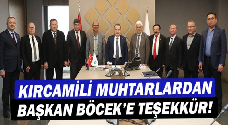 Antalya Muhtarlar Derneği Başkanı Topçular Mahalle Muhtarı Nazif Alp, Muratpaşa Muhtarlar Derneği Başkanı Yeşilova Mahalle Muhtarı Ahmet Akcan, Kırcami Mahalle Muhtarı Mehmet Köksal, Zümrütova Mahalle Muhtarı Muammer Dönmez, Güzeloluk Mahalle Muhtarı İzzet Ak, Tarım Mahalle Muhtarı Murat Kurt, Doğuyaka Mahalle Muhtarı Kemalettin Uluçay, Mehmetçik Mahalle Muhtarı Adnan Çetin, Çağlayan Mahalle Muhtarı İbrahim Efe, Fener Mahalle Muhtarı Mehmet Çakır Başkan Muhittin Böcek’e Büyükşehir Belediye Meclisi’nden hızla geçen Kırcami planlamasıyla ilgili samimi gayretleri nedeniyle teşekkür etti.