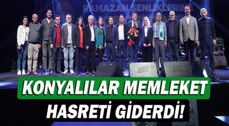 Antalya Konyalılar Derneği Başkan Vekili Nebi Sezgin, Finike Belediye Başkanı Mustafa Geyikçi, Antalya Büyükşehir Belediye Meclis Üyesi Konyalı Mithat Aras ve Konyalı sanatçı Sami Çelik sahnede, Konya ise dilinde.