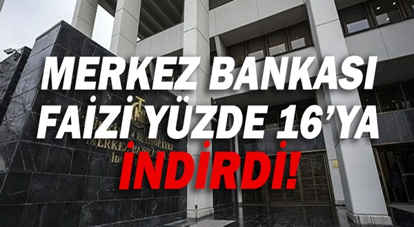 TCMB Para Politikası Kurulu (PPK), politika faizi olan bir hafta vadeli repo ihale faiz oranını 200 baz puan indirerek yüzde 16'ya düşürdü. TCMB böylece art arda iki toplantıda 300 baz puan faiz indirimi yapmış oldu.