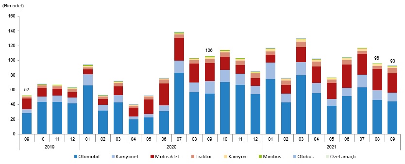 Trafiğe kaydı yapılan taşıt sayısı, Eylül 2019-Eylül 2021