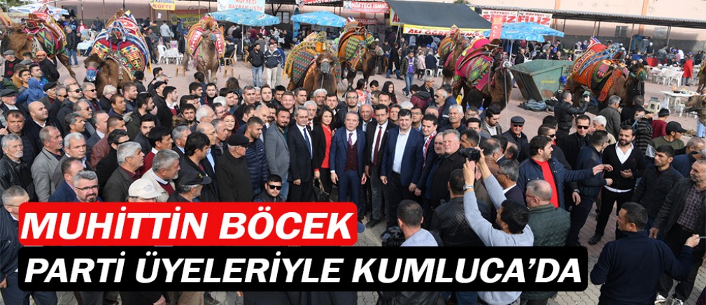 CHP Antalya Büyükşehir Belediye Başkan Adayı olan Konyaaltı Belediye Başkanı Muhittin Böcek, Kumluca’da bu yıl 13.sü düzenlenen Deve Güreşlerini izledi. Başkan Böcek, Antalya İl Başkanı Ahmet Kumbul, CHP Antalya Milletvekilleri Cavit Arı, Çetin Osman Budak ve Aydın Özer, CHP Gençlik Kolları İl Başkanı Musa Gül ile birlikte ilk olarak CHP Kumluca İlçe Başkanı Fahrettin Karaöz’ü ziyaret etti. Partililer tarafından karşılanan Başkan Muhittin Böcek, Antalya’da barış ve huzur içinde seçim çalışması yürüttüklerini belirterek, her kesimden vatandaşın oyuna talip olduğunu söyledi. Antalya’da Gazipaşa’dan Kaş’a, genç-yaşlı, kadın-erkek topyekün çalıştıklarını dile getiren Muhittin Böcek, birlik ve beraberlik içinde bu seçimleri kazanacaklarını bildirdi.