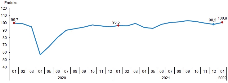 Bir önceki aya göre 2022 Ocak ayında tüketici güven endeksi %6,2 oranında artarak 73,2 değerini, reel kesim güven endeksi %1,6 oranında artarak 111,9 değerini, hizmet sektörü güven endeksi %1,2 oranında artarak 120,2 değerini, perakende ticaret sektörü güven endeksi %2,5 oranında artarak 124,4 değerini aldı. İnşaat sektörü güven endeksi %5,0 oranında azalarak 85,5 değerini aldı.