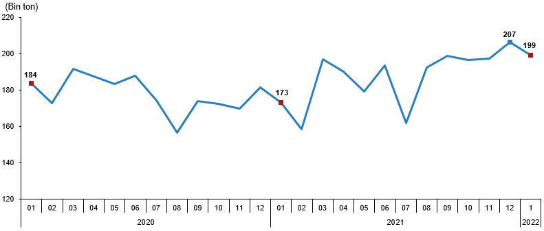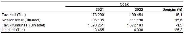 Tavuk eti üretim miktarı, Ocak 2022
