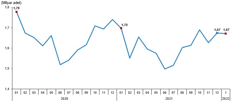 Bir önceki ay 1 milyar 674 milyon 366 bin adet olan tavuk yumurtası üretimi Ocak ayında %0,1 azalarak 1 milyar 672 milyon 183 bin adet oldu.