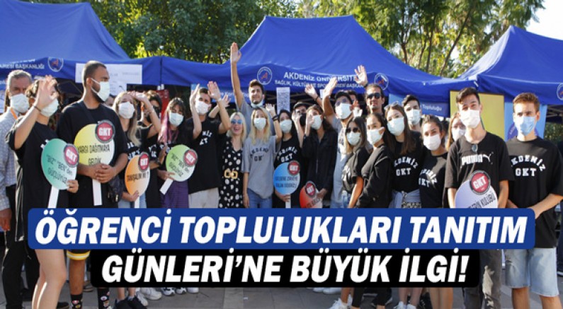 Akdeniz Üniversitesi Mühendislik Fakültesi önünde bulunan Sevgi Yolu’nda başlayan 2021-2022 Öğretim Yılı Öğrenci Toplulukları Tanıtım Günleri’ne öğrenciler büyük ilgi gösterdi. Akdeniz Üniversitesi’nde Sağlık, Kültür ve Spor Dairesi Başkanlığı’na bağlı 102’si Kültür Hizmetleri’ne bağlı, 26’sı Spor Hizmetleri’ne bağlı olmak üzere toplam 128 topluluk bulunuyor.