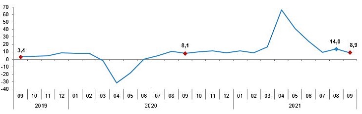 Sanayi üretim endeksi yıllık değişim oranları (%), Eylül 2021
