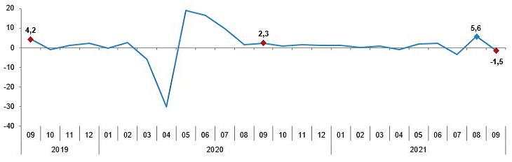 Sanayi üretim endeksi aylık değişim oranları (%), Eylül 2021