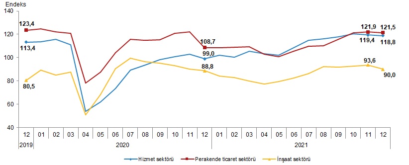 Mevsim etkilerinden arındırılmış sektörel güven endeksleri, Aralık 2021
