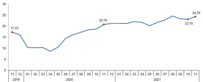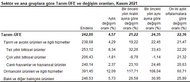 Tarım-ÜFE yıllık değişim oranı (%), Kasım 2021