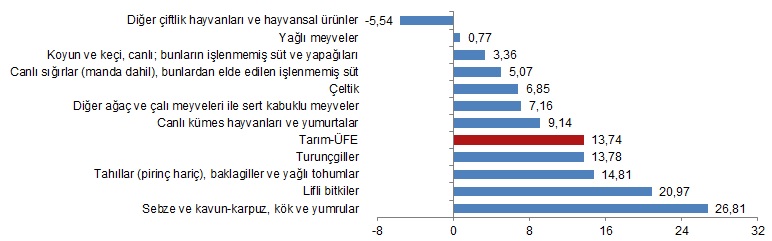 Yıllık Tarım-ÜFE'ye göre 8 alt grup daha düşük, 3 alt grup daha yüksek değişim gösterdi
