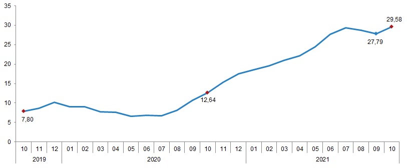 Tarım-GFE yıllık değişim oranı (%), Ekim 2021