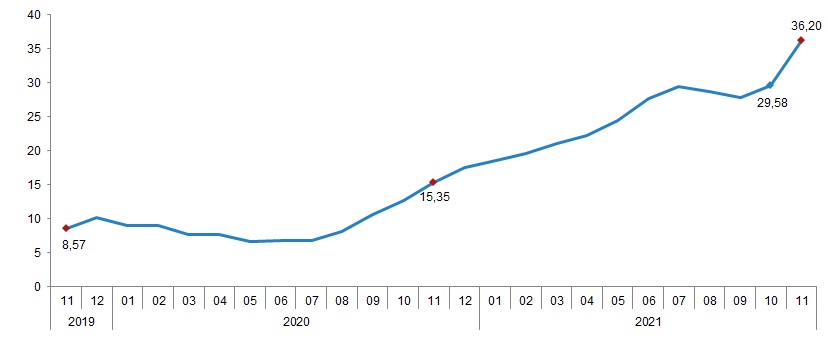 Tarım-GFE yıllık değişim oranı (%), Kasım 2021