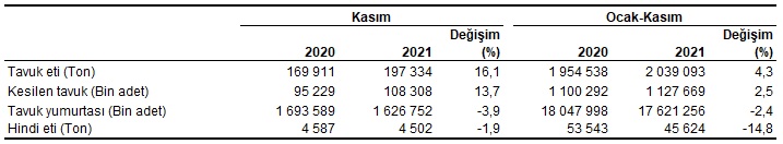 Kümes hayvancılığı üretim miktarı, Kasım 2021