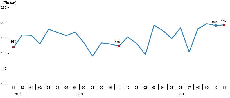 Tavuk eti üretim miktarı, Kasım 2021