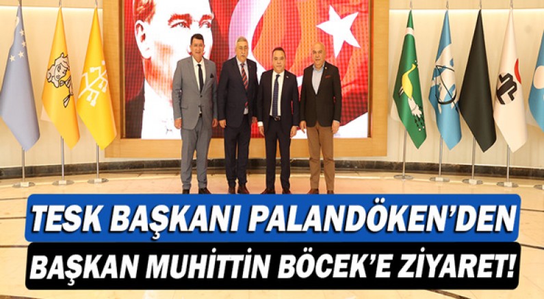 TESK Genel Başkanı Bendevi Palandöken, Antalya Esnaf ve Sanatkarlar Odası Başkanı (AESOB) Başkanı Adlıhan Dere ile birlikte Başkan Muhittin Böcek’e ziyarette bulundu.
