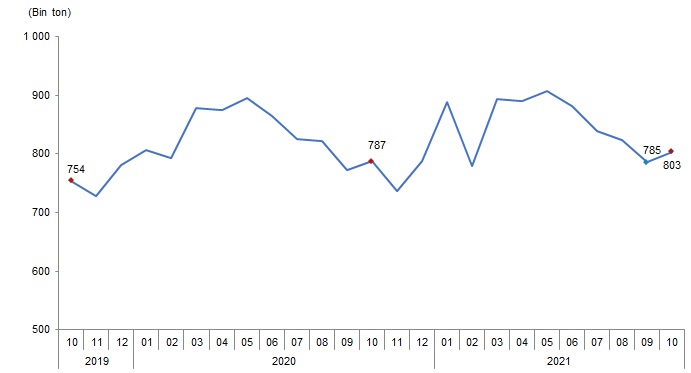 Süt ürünleri üretimi, Ekim 2020-Ekim 2021