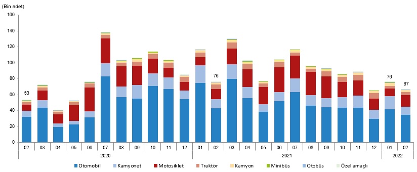 Trafiğe kaydı yapılan taşıt sayısı, Şubat 2020-Şubat 2022