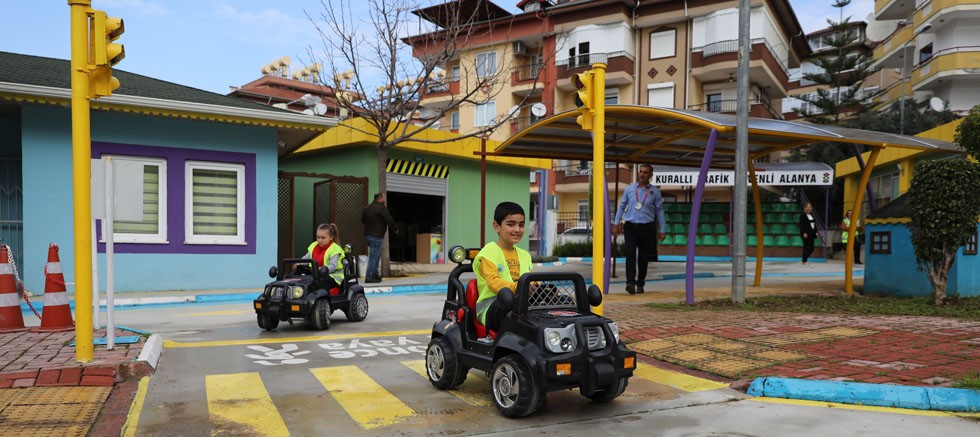 Her gün onlarca çocuğu ve ailesini misafir eden Alanya Belediyesi Trafik Eğitim Parkı’nda çocuklar eğlenirken öğreniyor. Teorik olarak verilen bilgiler ışığında uygulama alanına geçen öğrenciler, burada akülü araba ile test yapıyor, trafik lambalarının olduğu yaya geçitlerinde karşıdan karşıya kontrollü geçiş yapıyor.