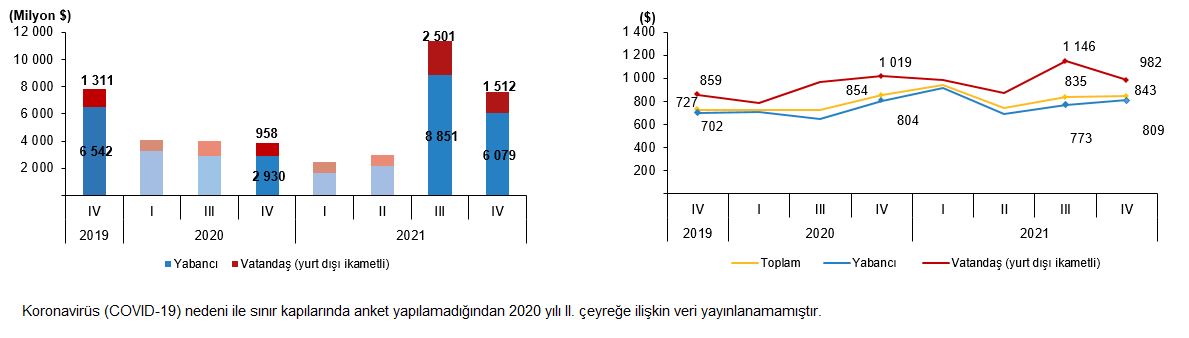 Turizm gideri ve yurt dışını ziyaret eden vatandaş sayısı, IV. Çeyrek: Ekim-Aralık, 2021