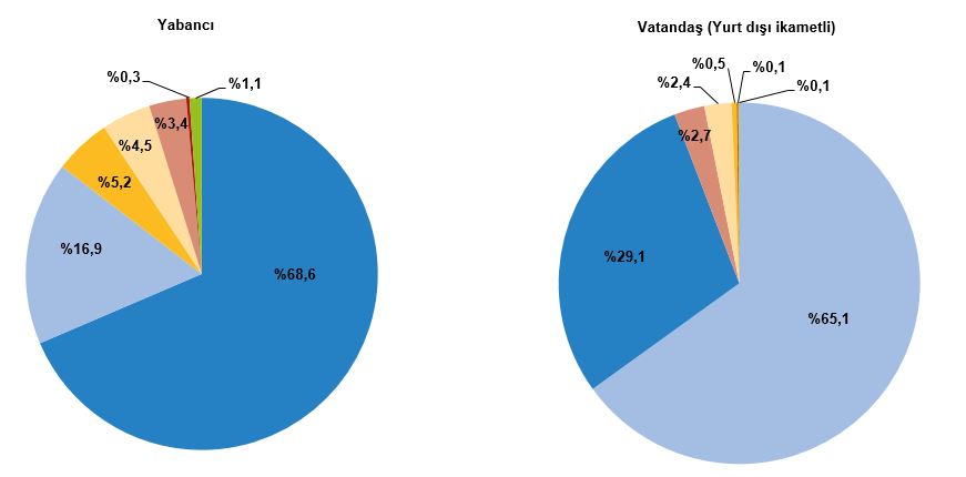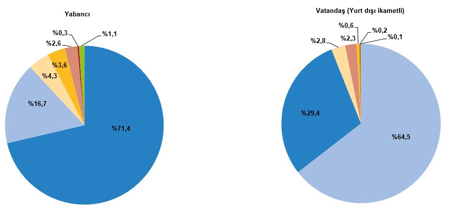 Bu çeyrekte yabancı ziyaretçiler ülkemizi %68,6 ile en çok "gezi, eğlence, sportif ve kültürel faaliyetler" amacıyla ziyaret etti