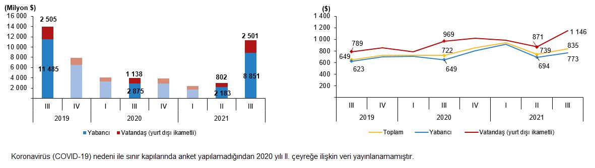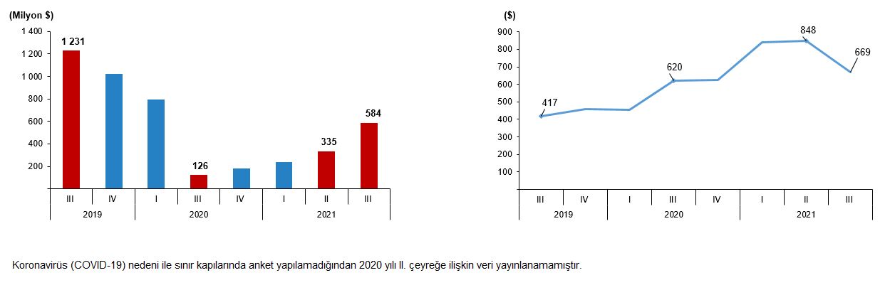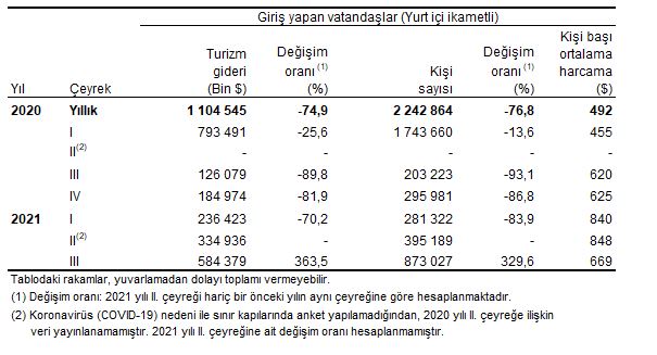 Turizm gideri ve yurt dışını ziyaret eden vatandaş sayısı, III. Çeyrek: Temmuz-Eylül, 2021
