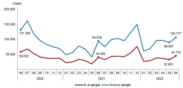 Türkiye genelinde ikinci el konut satışları Haziran ayında bir önceki yılın aynı ayına göre %11,8 artış göstererek 105 bin 777 oldu. Toplam konut satışları içinde ikinci el konut satışının payı %70,3 oldu. İkinci el konut satışları Ocak-Haziran döneminde ise bir önceki yılın aynı dönemine göre %34,6 artışla 517 bin 947 olarak gerçekleşti.