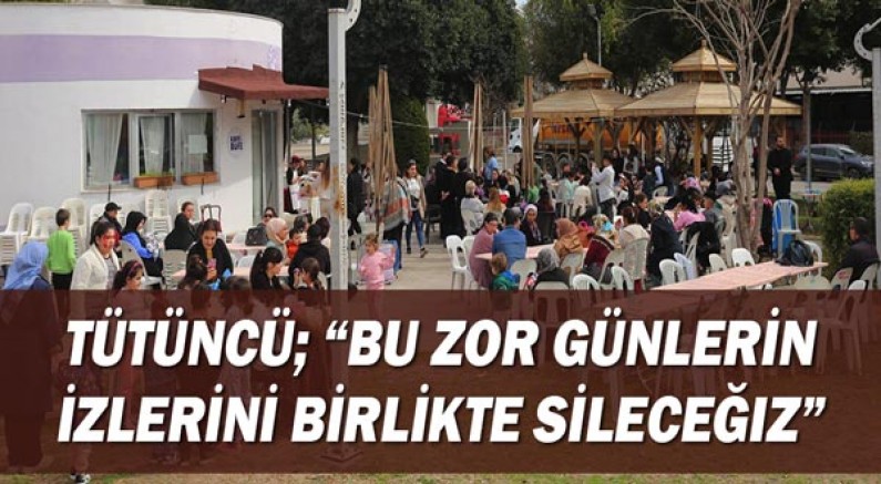 Antalya’daki depremzede aileleri en iyi şekilde misafir edeceklerini belirten Başkan Tütüncü, “Bu zor günlerin izlerini birlikte ve beraberce silmeye çalışacağız. Kalplerimizde herkese yetecek kadar bir yer var. Akdeniz’in insanı sıcaktır. Bizim kalplerimiz Akdeniz kadar geniştir. Bu günleri yardımlaşmanın en güzel örneklerini göstererek, aşacağız. Hayatlarını kaybeden kardeşlerimize Allah’tan rahmet diliyorum. Mekanları cennet olsun. Rabbim şehitlik mertebesi nasip etsin. Bu zor günleri hep beraber aşacağız. Ben bu güzel buluşmayı düzenledikleri için, deprem bölgesine yardımları için, hepimize destekleri için, şehrimize kattıkları güzellikler için Çiğdem Bal ve arkadaşlarına çok teşekkür ediyorum. “ dedi. Başkan Tütüncü, konuşmasının ardından depremzede ailelere kendi elleriyle yemek ikram etti.