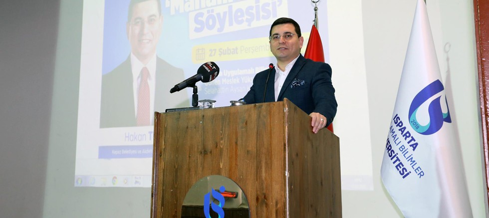 Isparta Uygulamalı Bilimler Üniversitesi Gönen Meslek Yüksekokulu’nun düzenlediği ‘Mahalli İdareler Söyleşisi’ etkinliğinin konuğu Kepez Belediye Başkanı ve Akdeniz Belediyeler Birliği Başkanı Hakan Tütüncü oldu. Okulun konferans salonunda gerçekleştirilen söyleşiye Gönen Kaymakamı Yunus Coşkun, Gönen Belediye Başkanı Osman Kesmen, Isparta Uygulamalı Bilimler Üniversitesi Rektör Yardımcısı Prof. Dr. Hilmi Cenk Bayrakçı, Isparta ilçe belediye başkanları, ilçe protokolü, yüksekokulun akademik, idari personeli ile öğrenciler katıldı. Saygı duruşunda bulunulması ve İstiklal Marşı’nın okunmasından sonra kürsüye gelen Başkan Hakan Tütüncü, selamlama konuşmasının ardından, öğrencilerin sorularını cevapladı.