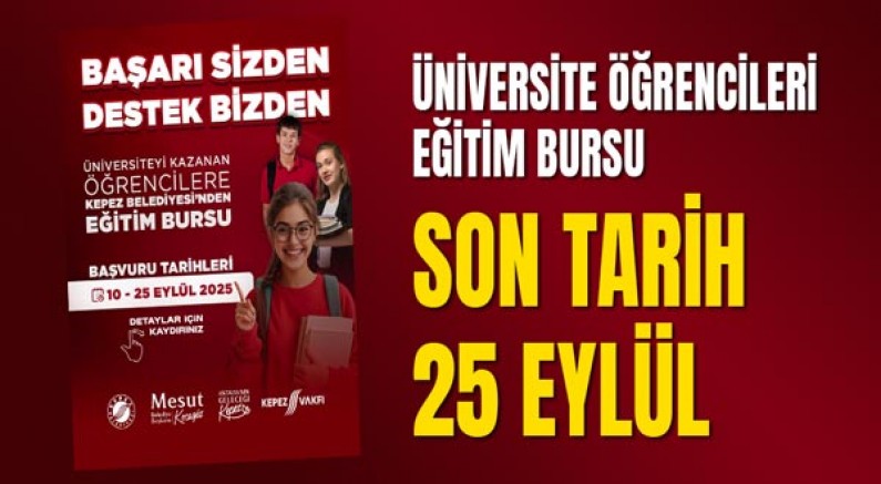 Kepez Belediyesi, gençlerin eğitim yolculuğunda da yanlarında olmaya devam ediyor. Üniversiteyi kazanan ve maddi desteğe ihtiyaç duyan öğrencilere verilen burs, bu yıl da Kepez Kalkınma ve Dayanışma Vakfı İktisadi İşletmesi aracılığıyla sağlanacak. Ayrıntılı bilgiye www.kepez-bld.gov.tr adresinden veya (0 242) 310 58 58 numaralı telefondan ulaşılabiliyor.