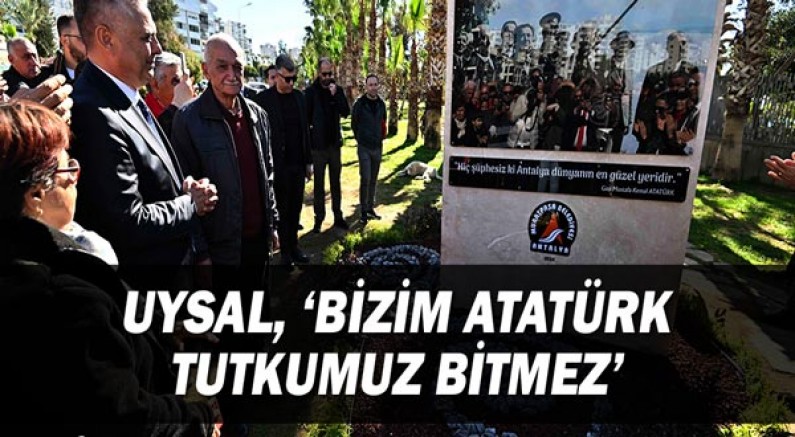 Başkan Uysal, açılış töreninde Atatürk’ün 100 yıl önce ortaya koyduğu vizyonu günümüze taşımamız gerektiğini belirterek “Bizim Atatürk tutkumuz bitmez. Çünkü Atatürk bizi dünya ailesinin bir parçası yaptı. Bizi bir ulus yaptı bizi bizim geleceğimizi, geçmişimizi kurtardığı gibi geleceğimizi de aydınlattı” dedi. Konuşmaların ardından rölyef açılışı gerçekleşti. Törende Hüseyin Çimrin ise kendisinin kaleme aldığı ‘Atatürk Antalya’da’ kitabını Başkan Uysal’a armağan etti.