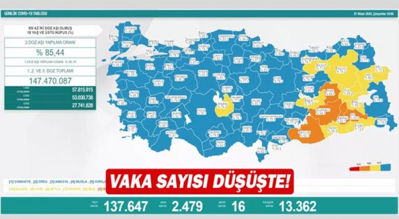 18 yaş üstü nüfusta ikinci doz aşı uygulananların oranı yüzde 85,44, birinci doz aşı yapılanların oranı yüzde 93,15 olarak gerçekleşti.