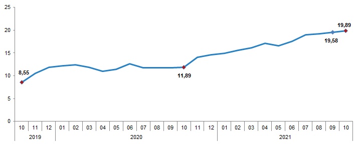TÜFE yıllık değişim oranları (%), Ekim 2021