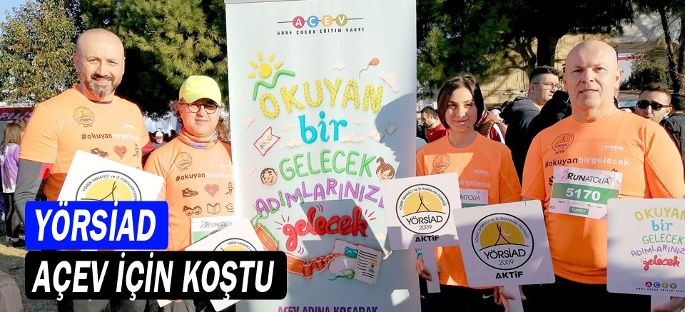 Antalya’da bu yıl 15.’si gerçekleştirilen Runatolia Maratonu’na katılan YÖRSİAD ( Yörük Sanayici İş İnsanları Derneği ) farkındalık yaratmak amacıyla, AÇEV ( Anne Çocuk Eğitim Vakfı ) adına Okuyan Bir gelecek için koştu.