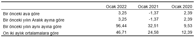 YD-ÜFE aylık değişim oranları (%), Ocak 2022