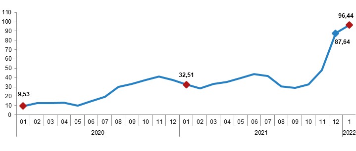 YD-ÜFE yıllık değişim oranları (%), Ocak 2022