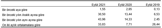 Yİ-ÜFE yıllık değişim oranları (%), Eylül 2021