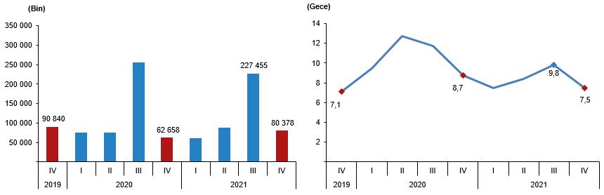 Geceleme sayısı, IV. Çeyrek, 2021 Ortalama geceleme sayısı, IV. Çeyrek, 2021