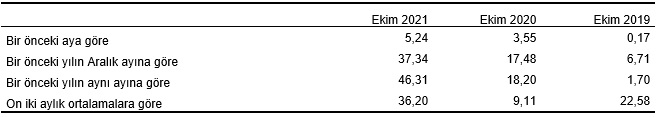 Yİ-ÜFE yıllık değişim oranları (%), Ekim 2021