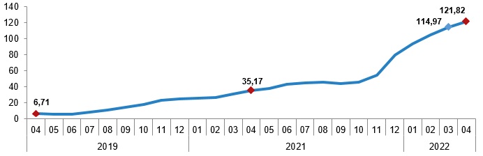 Yİ-ÜFE yıllık değişim oranı (%), Nisan 2022